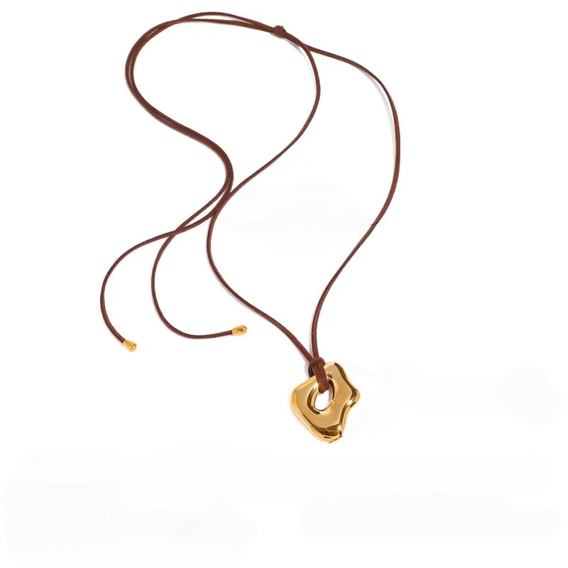 -Acero inoxidable -Cadena-cordón de gamuza -Largo ajustable -Diseño minimalista